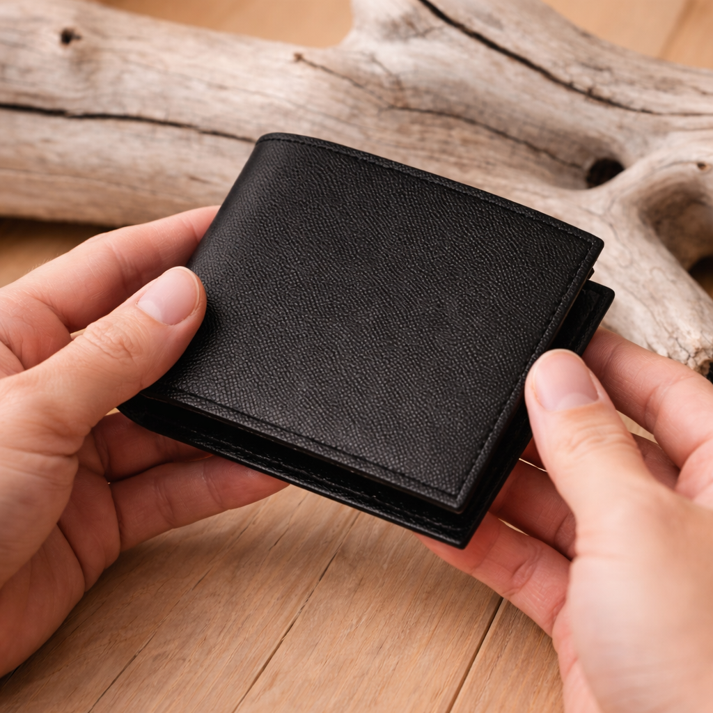 Classic Black Leather Bifold Wallet – with Card Slots & Coin Pocket