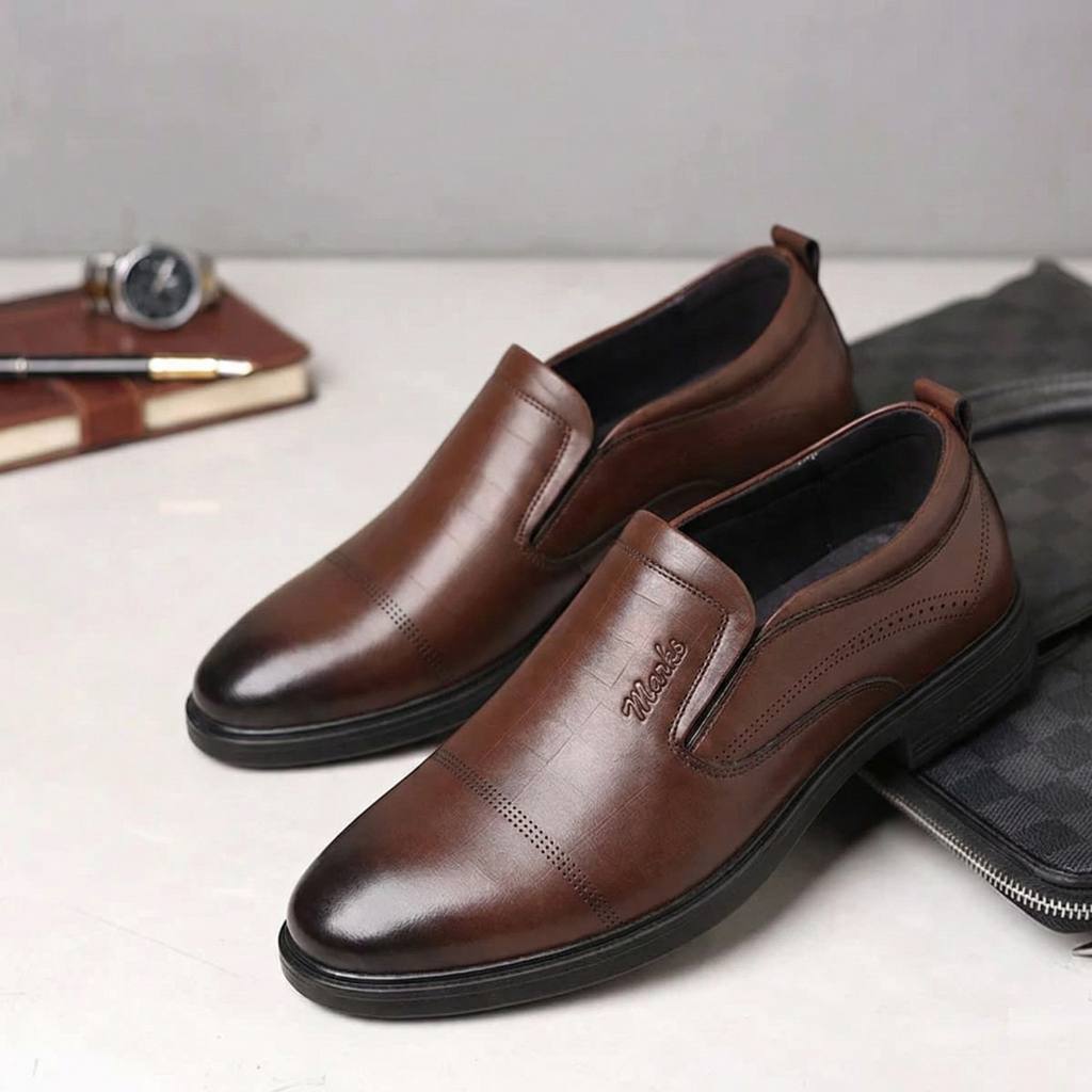 Upgrade your footwear collection with these elegant Brown slip-on shoes. Designed with a smooth, leather-like finish that offers the look and feel of luxury without the maintenance, these shoes are perfect for both formal and casual occasions. The lightweight construction ensures a comfortable fit, while the slip-on design adds convenience. With a cushioned insole for support and a durable outsole for grip, these shoes are a practical choice for everyday wear, work, or weekend outings.